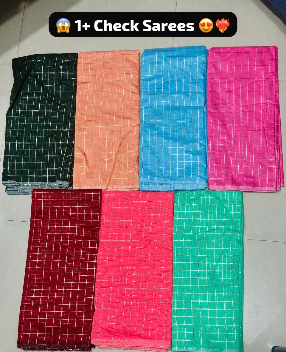 1+ Check saree lemon green